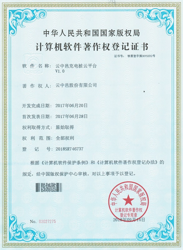 3. 充電樁云平臺軟件著作權、專利、商標、權威檢測、產品高額保險等全方位保護;